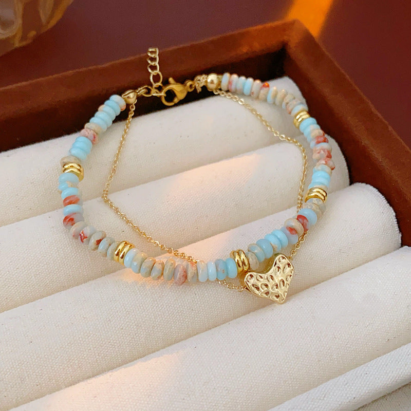 A delicate fusion of natural stones and heart-shaped charm, the Heartstone Harmony Set embodies timeless elegance with a touch of oriental artistry. Featuring Shoushan stone, aquamarine beads, and alloy accents, each piece is designed for versatility and subtle luxury.