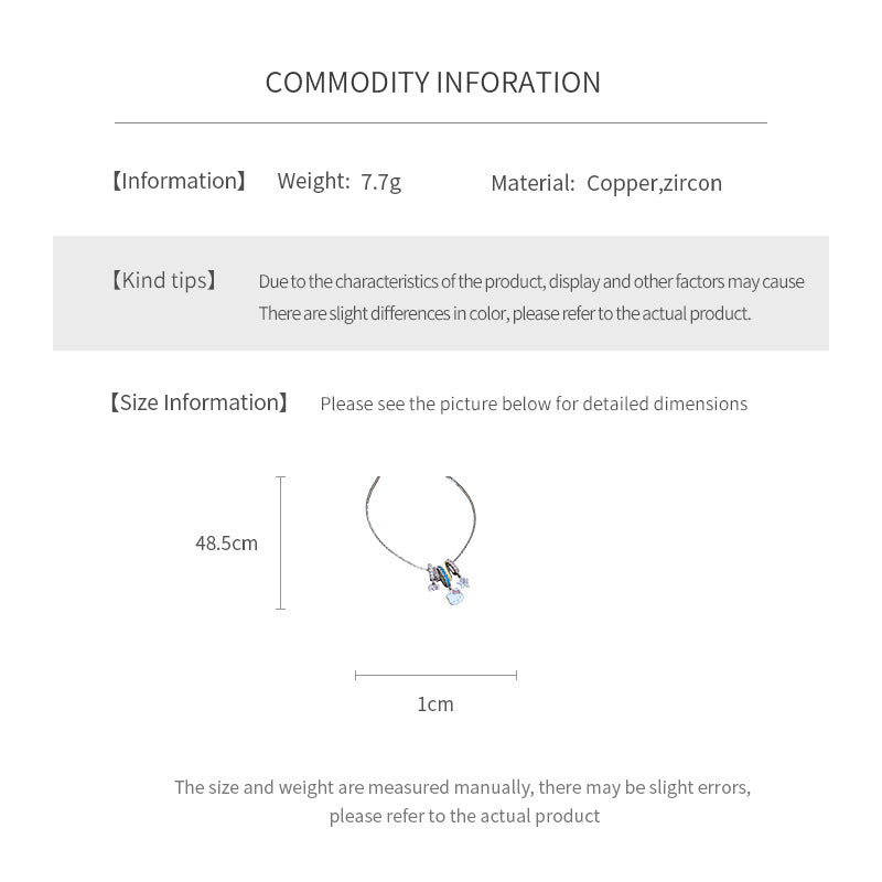 This playful necklace features a set of sparkling zircon bead rings paired with cute enamel charms—including a star, bow and cat motif. The slim silver-tone chain and candy-color accents bring a fresh, girly vibe with light-luxury sparkle.
