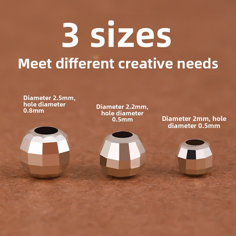 PrismGleam · 925 Sterling Faceted Beads— mirror-cut micro rounds that catch light from every angle.Use them as spacers or highlights to bring clean sparkle to minimal bracelets, malas, and layered necklaces.